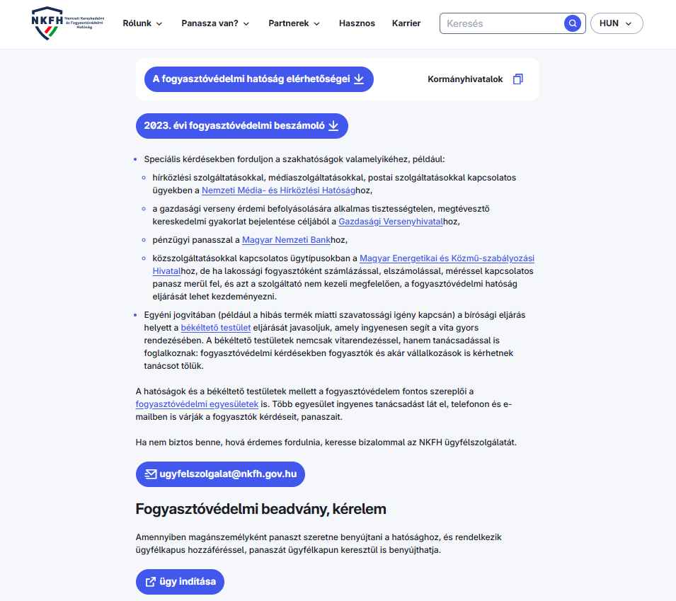 még 1x Fogyasztóvédelem (NKFH):ONLINE fogyasztóvédelmi panasz lehetősége